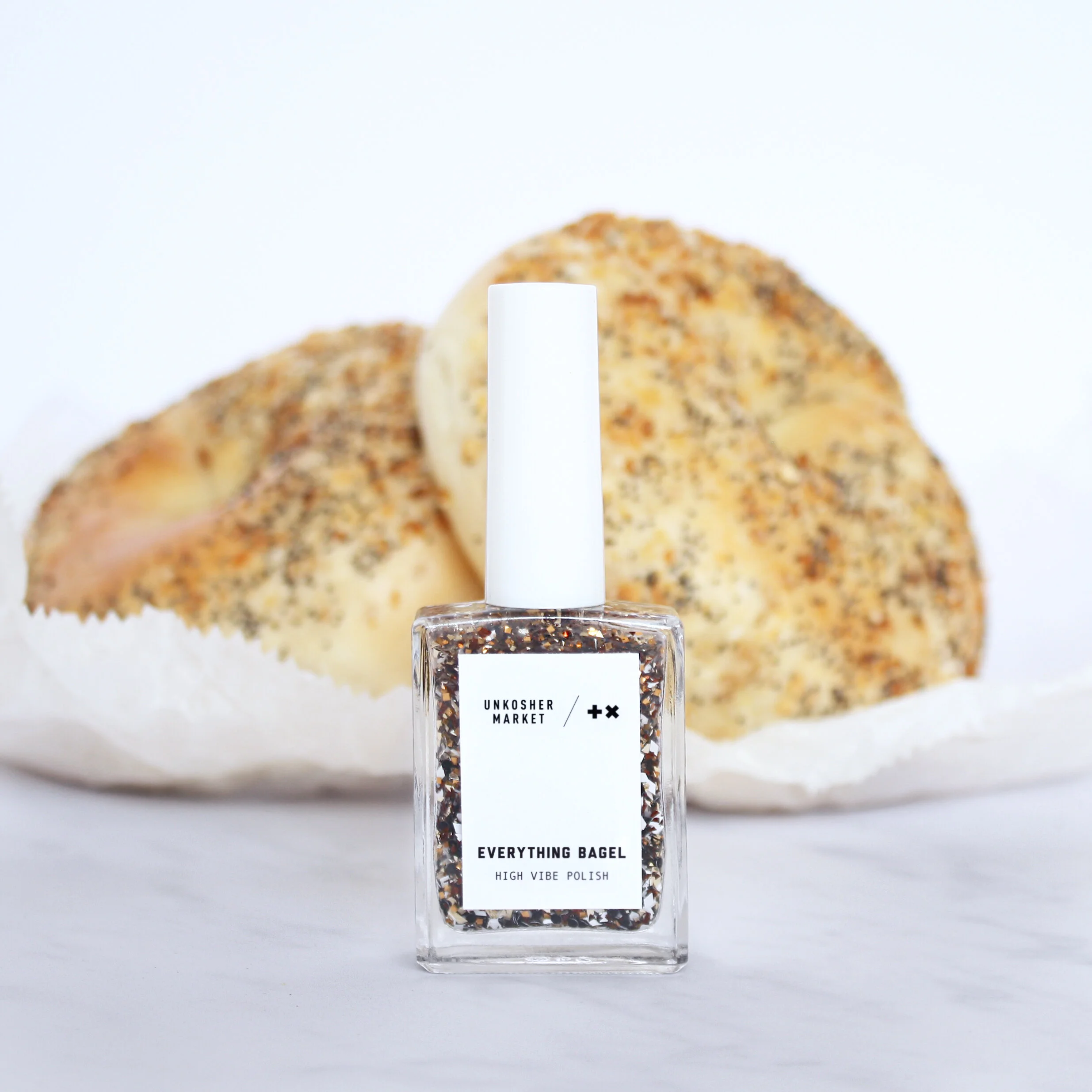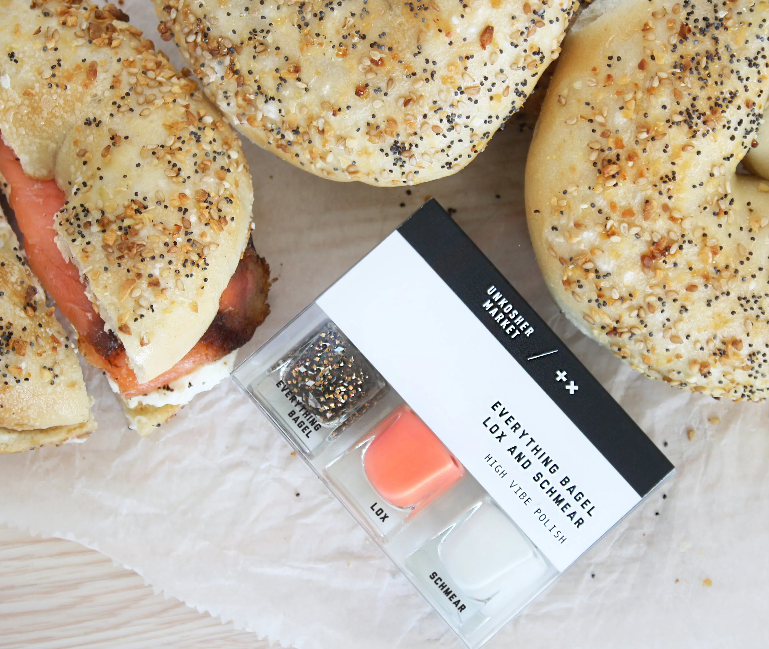 We've been featured in the Guardian, The Cut, Jewish Journal, Forward, Times of Israel and People. And our collection is available at the New York Jewish Museum, international boutiques and online. We even had a photo exhibit at the American Jewish Historical Society entitled "Bubby: Kosher love advice in Unkosher Times." And most recently, we worked with Positive Times to launch the first-ever Everything Bagel Nail Polish. How about them matzah balls?